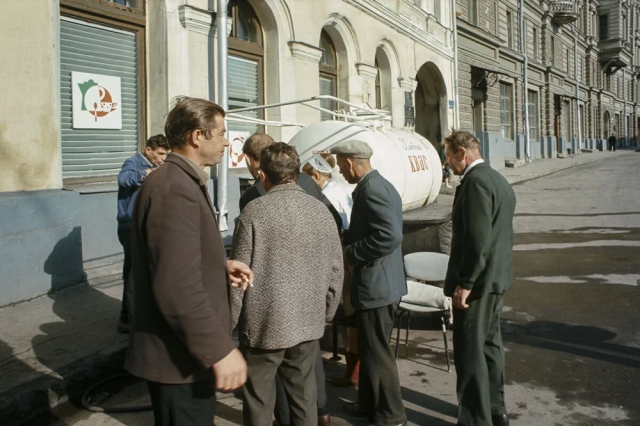 У бочки с квасом на улице Мархлевского (ныне - Милютинский переулок).