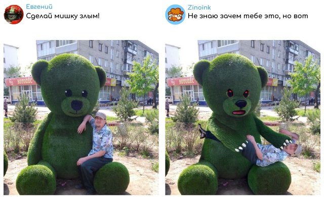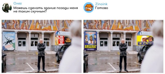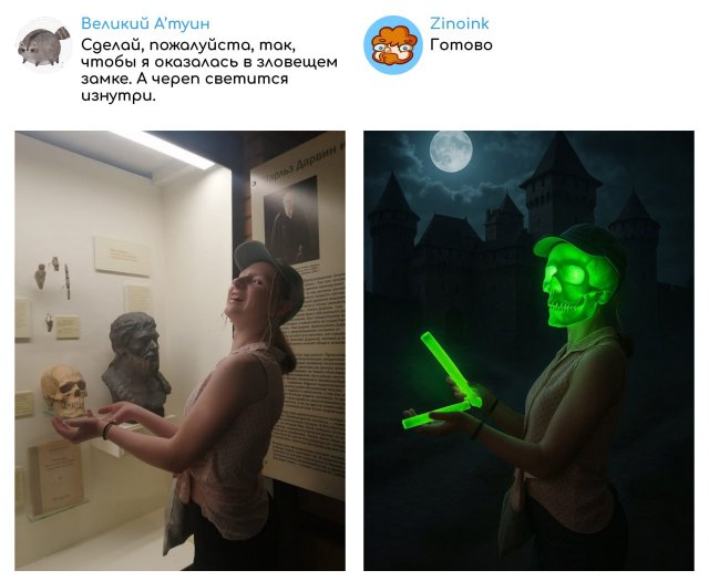 🎨 “Исправь моё фото!” — фоторофлы от Zinoink 25/06/2025 23:00 Если просишь Zinoink отредактировать фотку — готовься к неожиданному повороту. Он добавит ВСЁ, что ты попросишь, но немного... по-своему. Получается дико угарно. Люди присылают фото, а на выходе получают арт-хаус и мем одновременно. Просто посмотри. Главная / Картинки 0 Admin 0 134