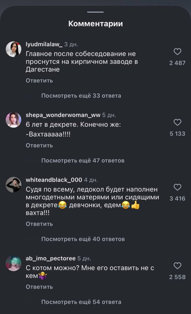 Полмиллиона в месяц. На ледоколе. С вахтой. Казалось бы, мечта любого сурового мужика. Но что-то пошло не так — на вакансию массово откликнулись... девушки! Кто эти смелые, что готовы на холод ради зарплаты? История, которую стоит прочитать до конца.