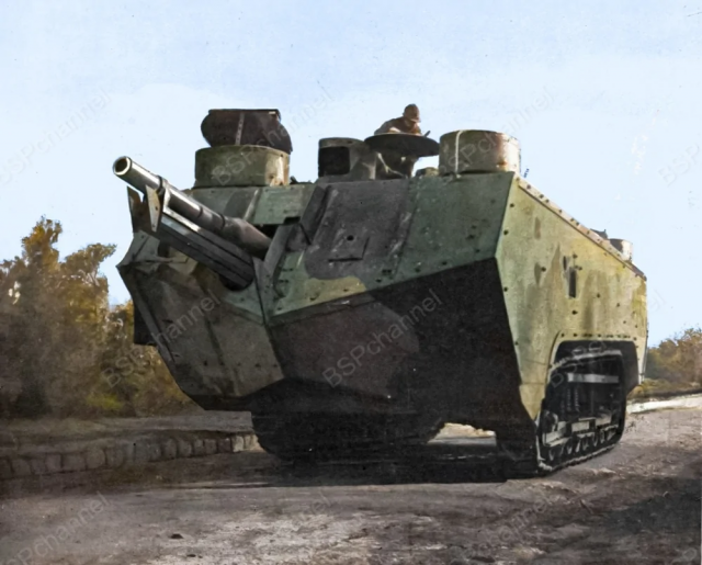 Первая Мировая война. Французский танк на холмах Моронвилье. Франция, 1917 год.