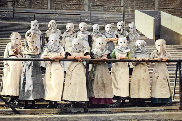 Немецкая медсестра в противогазе. Первая Мировая, 1918 год.