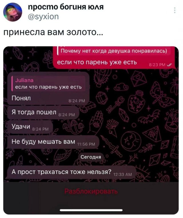 Подборка крутых твитов! 😂 27/06/2025 22:40 Когда хочется посмеяться, твиты — лучшее решение! Смешные и остроумные твиты из социальных сетей поднимут вам настроение! Заходите в пост и заряжайтесь позитивом! 💬 Главная / Картинки 0 Admin 0 92