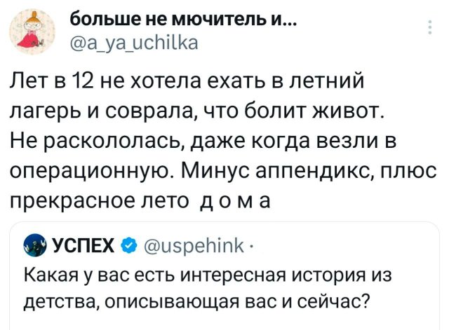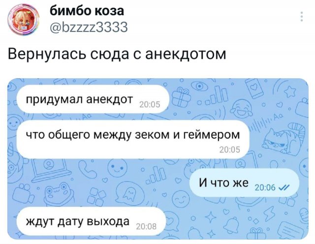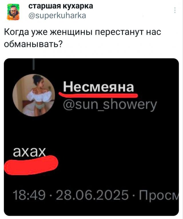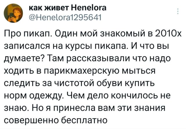 😂 Твиты, которые поймут все 02/07/2025 23:30 Если настроение на нуле — ловите свежую порцию смешных и жизненных твитов. Немного иронии, немного боли и много "вот это прям про меня". Залипаем! 💬📱 Главная / Картинки +3 Admin 0 146