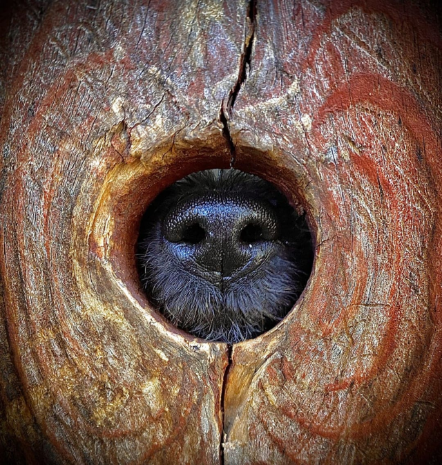 Собака моих соседей вынюхивает через отверстие в заборе