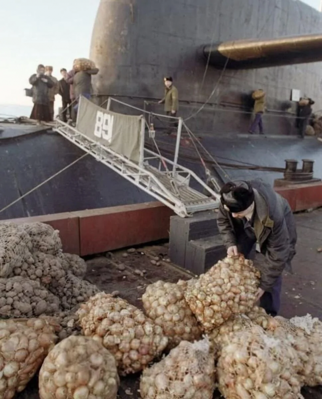 Подготовка к походу, загрузка провизии на атомную подводную лодку, Гаджиево, Мурманская область, 1996 год