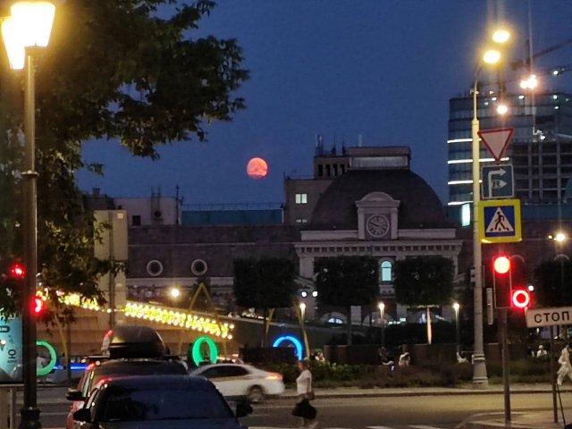 Красная луна, или "кровавая луна", обычно наблюдается во время полного лунного затмения. В этот момент Земля проходит между Солнцем и Луной, блокируя солнечный свет и проецируя свою тень на Луну. Однако, часть солнечного света все же достигает Луны, преломляясь и рассеиваясь в атмосфере Земли, причем длинноволновый красный свет рассеивается меньше всего и достигает поверхности Луны, придавая ей красноватый оттенок. И такую зловещую красоту могли наблюдать москвичи прошлой ночью. А вы смотрели наверх?
