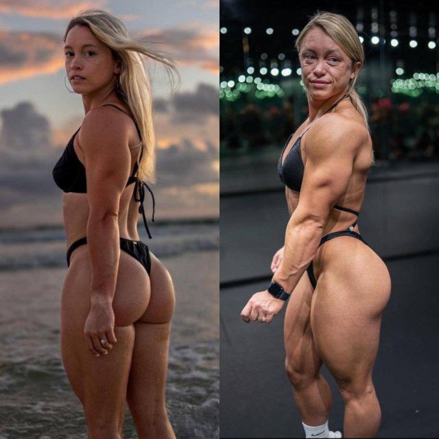 На первом фото — яркая, спортивная девушка. А потом — три года химии, и черты лица кардинально меняются. Не только мышцы растут, но и кожа, форма лица, общее впечатление. Вот почему важно знать меру — и выбирать осознанно.