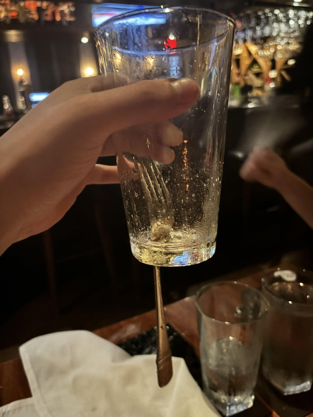 «Официант бросил вилку в мой стакан, и она пробила идеальное отверстие, не разбив стакан полностью»