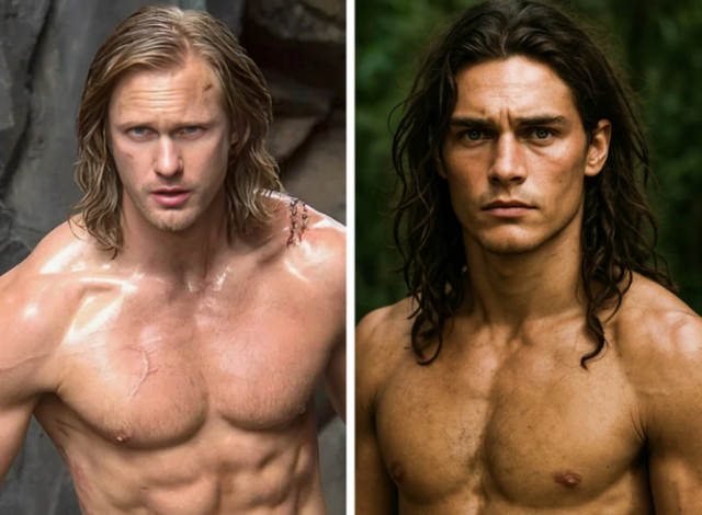 Благодаря фильму «Тарзан. Легенда», главного героя мы предоставляем таким, каким его воплотил актер Александр Скарсгард — мускулистым блондином с голубыми глазами и бледной кожей. Но этот образ отличается о того, что задумал автор. В книгах о приключениях Тарзана он описывается, как загорелый юноша с серыми глазами.