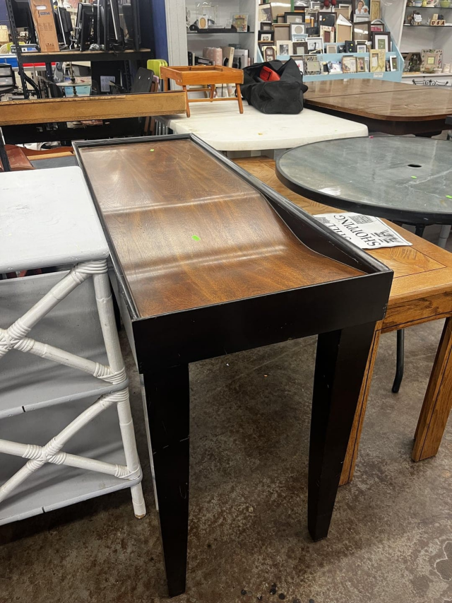 Похоже, у него была стеклянная столешница, и в углублении можно было выставлять вещи.