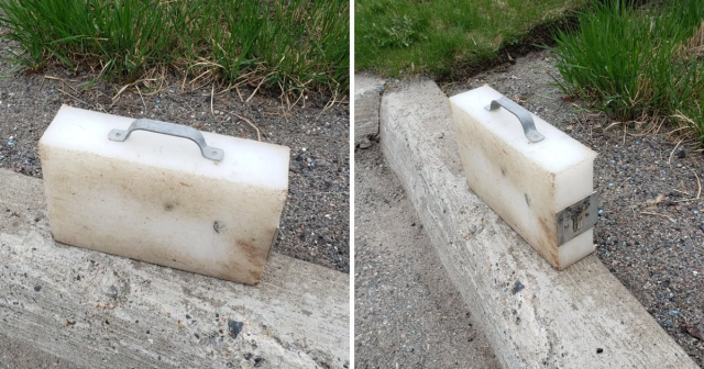 11. Твердый белый блок с ручкой, очень грязный, найден на парковке