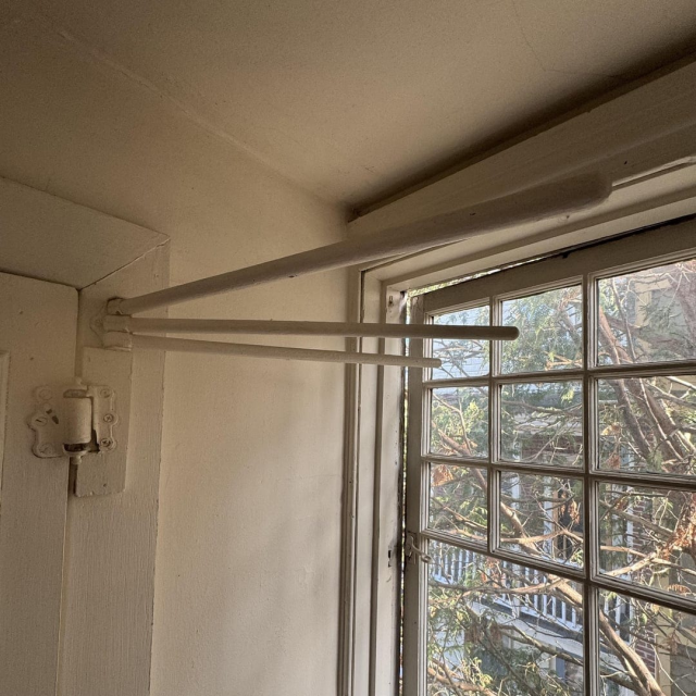 12. Три деревянные палки, выкрашенные в белый цвет, на шарнирах, которые позволяют им качаться. Расположены у двери