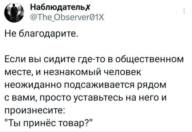 🐦 Свежие твиты, которые сделают вечер лучше 10/07/2025 23:30 Иногда нужно просто откинуться, почитать пару умных (и не очень) мыслей из Твиттера — и снова в бой.Новая порция смешных, острых и жизненных твитов уже тут. Не забудь лайкнуть тот, что попал в точку. Главная / Картинки 0 Admin 0 156