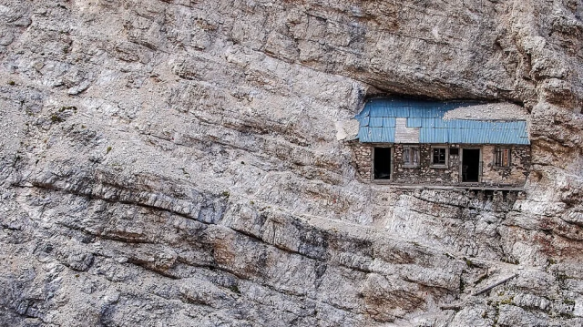 Убежище Буффа ди Перреро времён Первой мировой войны, расположенное на высоте 2760 метров в Монте-Кристалло, Италия