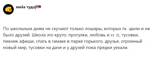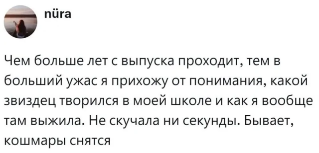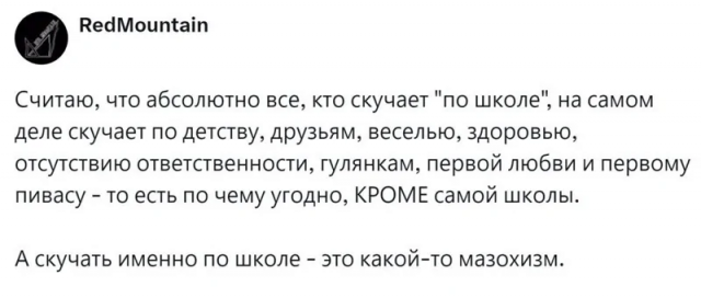 После Дня Знаний соцсети взорвались ностальгией. Школьники снова за партами, малыши впервые пошли в первый класс, а взрослые начали спорить: стоит ли вообще скучать по школе? Кто-то вспоминает беззаботные годы, а кто-то говорит: «Ни за что бы не вернулся».