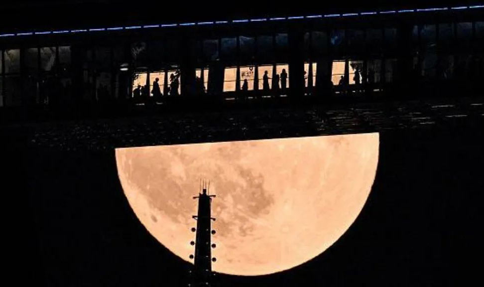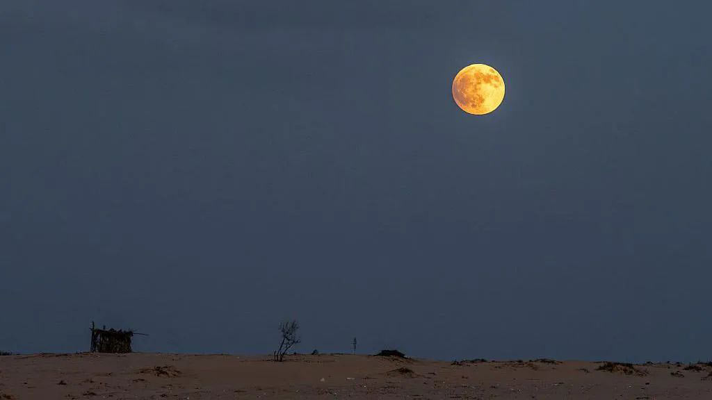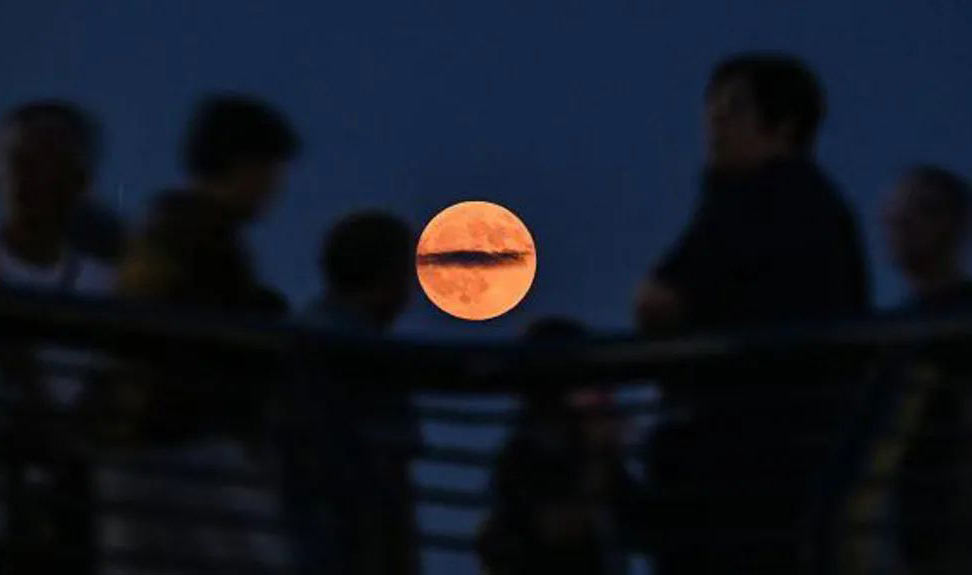Луна на пляже в Одессе: восход Кровавой Луны над морем: