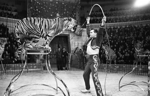 1960 год. Гастроли французского цирка в СССР. Дрессировщик тигров Шарль Бауман