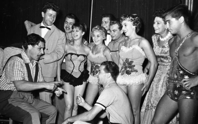 1958-1961 годы. Клоун Эдуард Середа и участники представления цирка ГДР в шапито