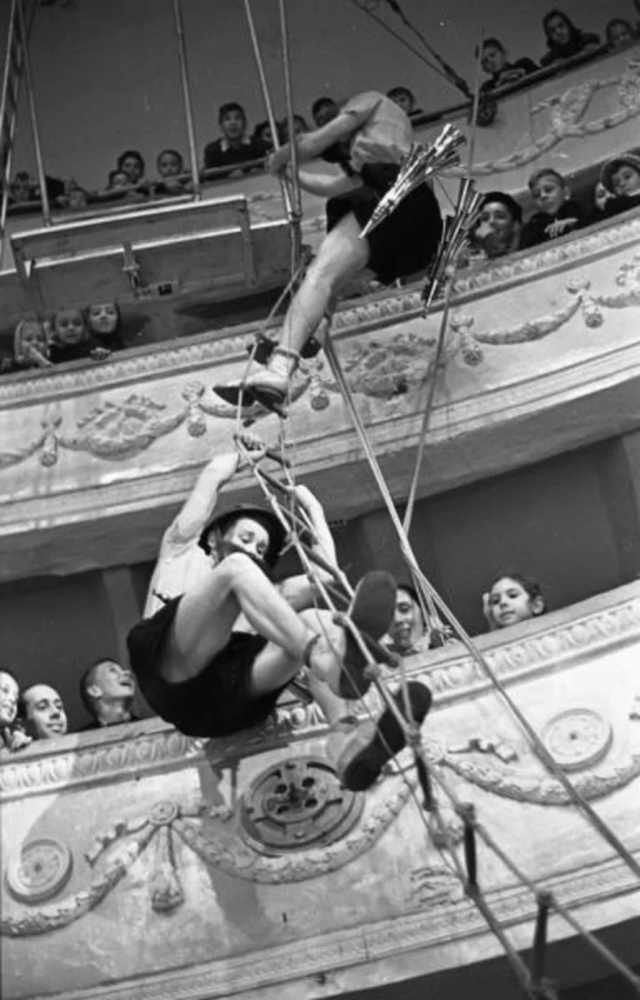 1959-1960 годы. Воздушная гимнастка Раиса Немчинская в новогоднем спектакле «Золотой орех»