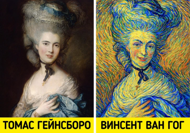 А что, если "Мону Лизу" написал бы не Леонардо, а, допустим, Ван Гог? Нейросети поиграли с идеей и перерисовали классические полотна в стиле других мастеров. Результат — одновременно странный и завораживающий.