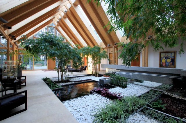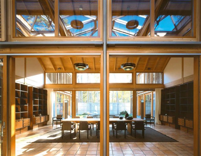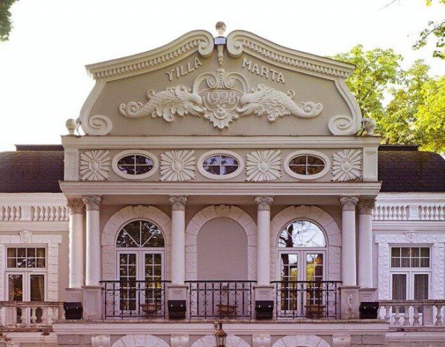 У дома две части: 100-летней Villa Marta, вдохновленной дворцом Линдерхоф, и новая част, построенная в 90-е немецким архитектором латвийского происхождения Мейнхардом фон Герканом.
