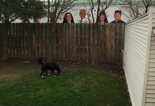 Странные соседи пришли поглазеть на собачку или просто фургон службы доставки за забором?