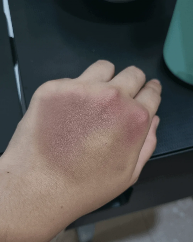 Большой синяк на руке через два дня после тренировочной внутривенной инъекции