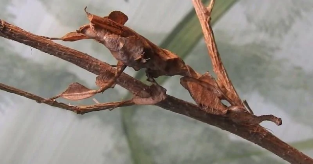 Насекомое, которое выглядит как красивый, но хрупкий сухой лист. Оно обитает на Мадагаскаре и в континентальной Африке и меняет свой цвет на зелёный при повышении влажности.