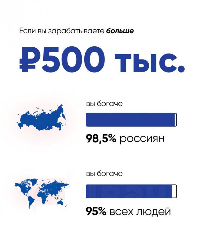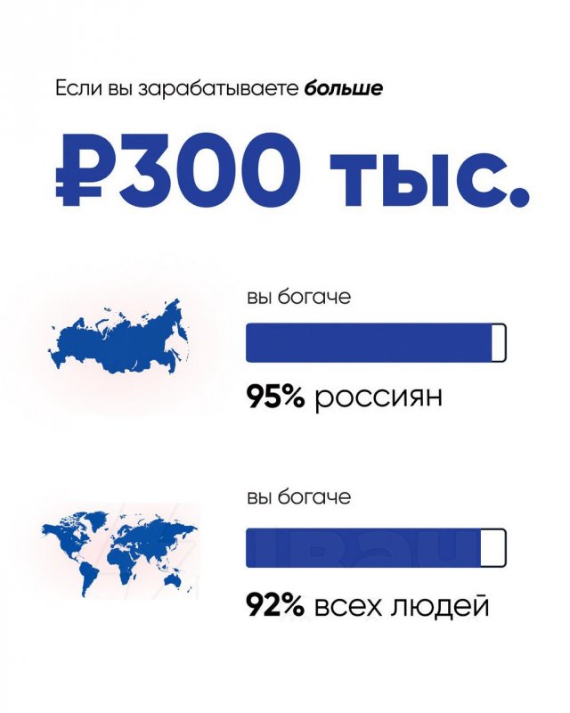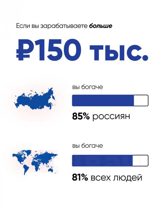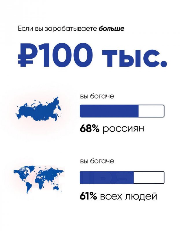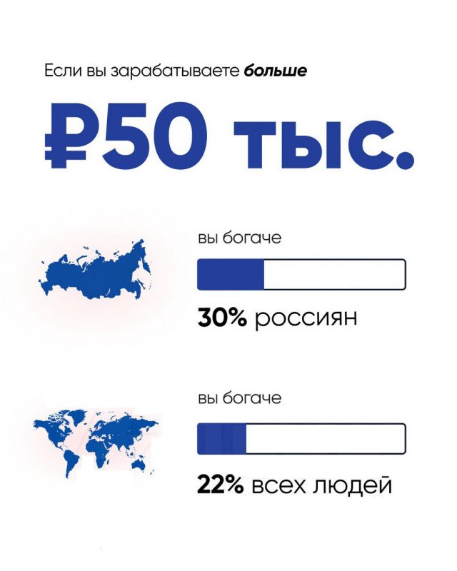 Аналитики World Inequality Database и Росстата представили таблицу, показывающую, насколько вы богаты или бедны по сравнению с работягами со всего мира. Согласно ей, если ваш доход достигает более 100 тысяч рублей, вы уже опережаете по богатству более половины населения Земли.