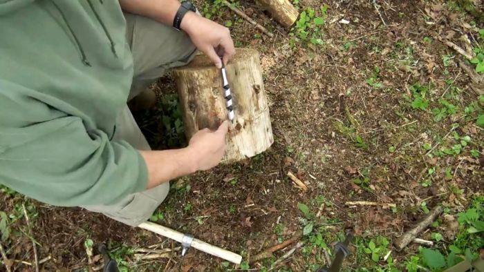Берем бревнышко небольшого диаметра. В лесу его можно спилить из сухого дерева ножовкой или ручной складной пилой.