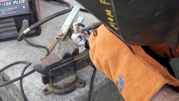 Итак, привариваем шестиугольник к кольцу, зачищаем от окалины.