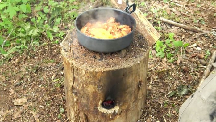 Чтобы приготовить пищу в лесу необходим костер, для которого нужно собрать дрова. Также, чтобы было куда поставить сковороду или кастрюлю - нужно специальное приспособление. Плюс ко всему костер не очень долго горит и его нужно постоянно поддерживать. Ну, еще как недостаток, огромное количество дыма.