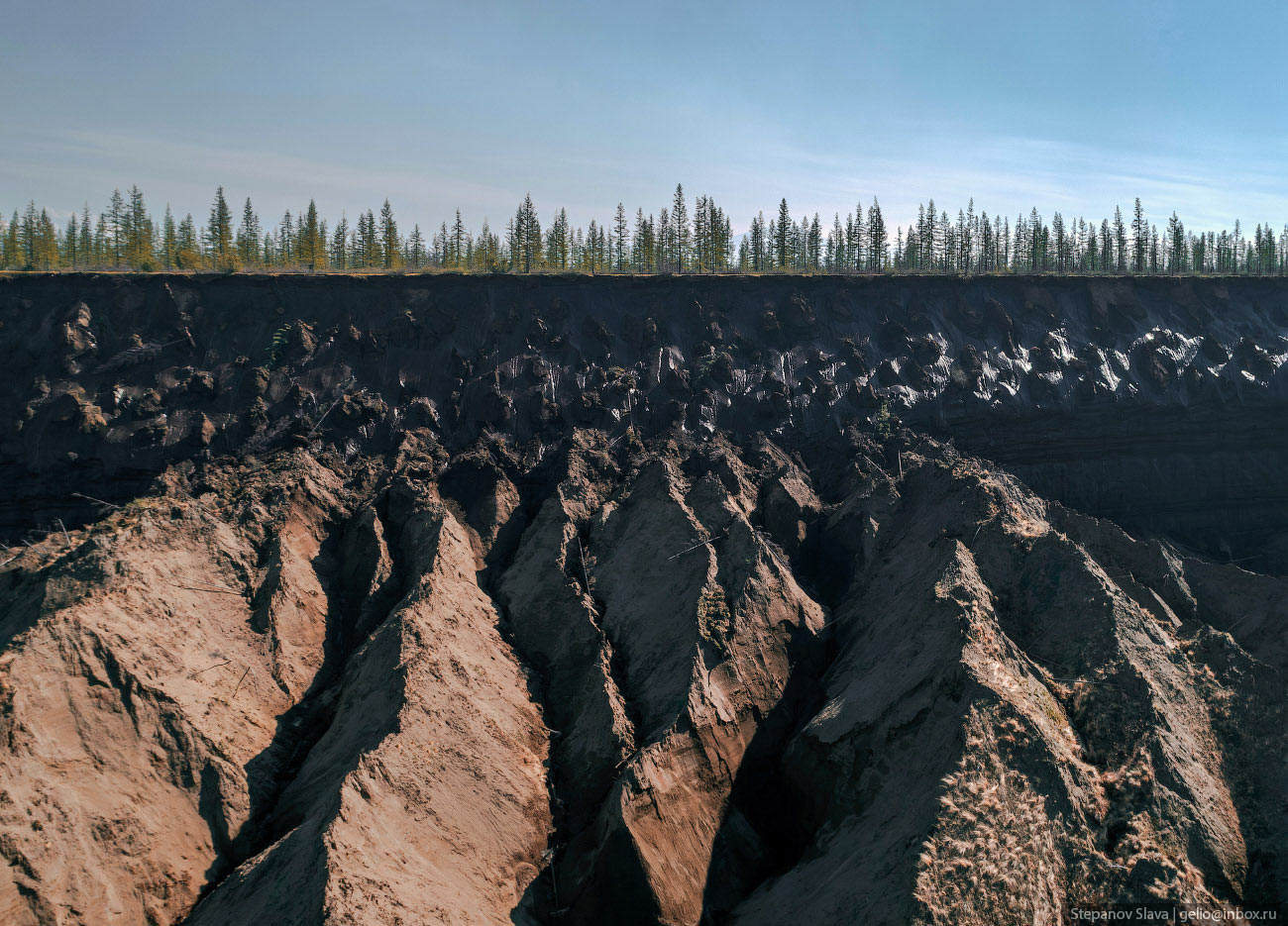 2. После этого почва просела, обнажив слой вечной мерзлоты.