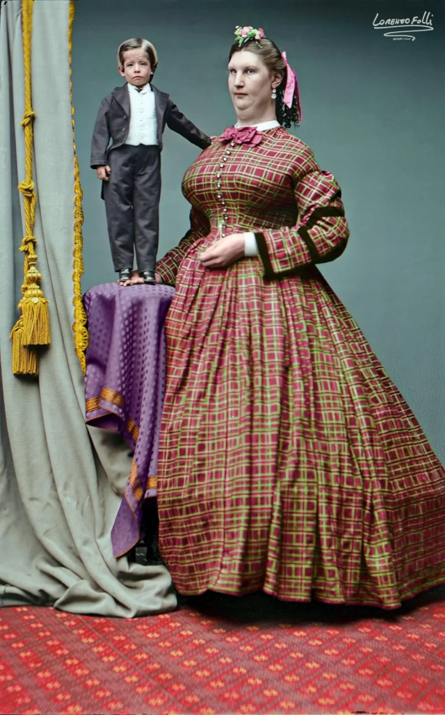 10. Анна Свон, великанша из Новой Шотландии, с королём лилипутов
