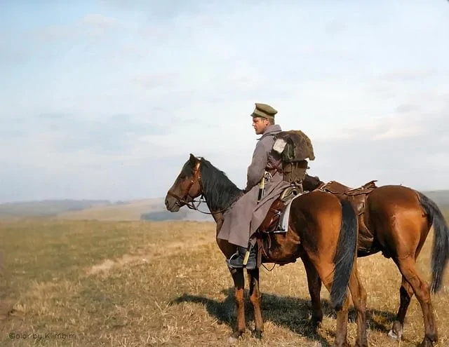 6. Одинокий русский солдат стоит у братской могилы в Галиции, где похоронены тела пятидесяти австрийцев и одиннадцати русских. Сентябрь 1914 года