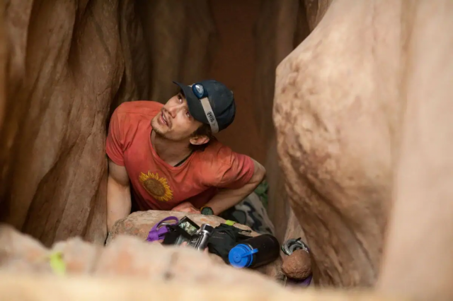 Альпинист Арон Ралстон отправляется в одиночный поход по каньонам и оказывается зажатым между скал после того, как упавший валун придавливает его руку. Без возможности вызвать помощь он пытается выжить, используя подручные средства и собственную силу воли. Сюжет основан на реальной истории, что делает происходящее ещё более жутким и реалистичным.