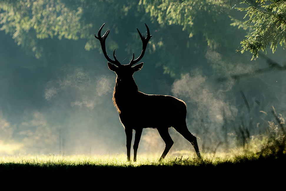 Силуэт оленя в лесу региона Таунус во Франкфурте, Германия, 1 октября 2025 года. (Фото Michael Probst):