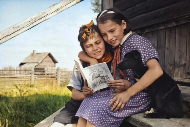 16. Две девочки, читающие книжку. СССР, 1940 год.