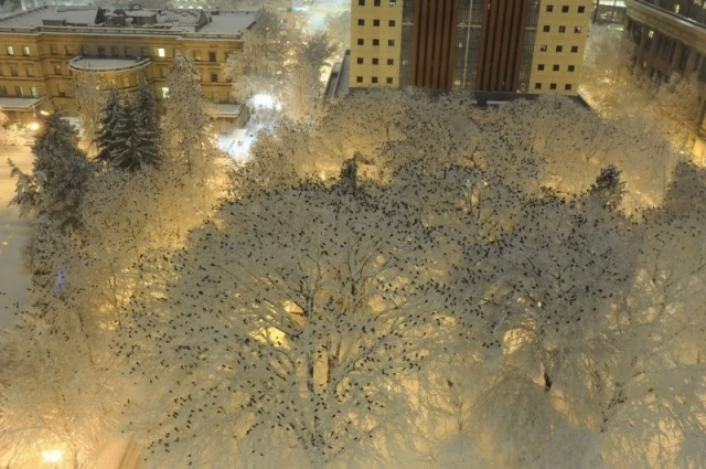 Эта завораживающая картина - вид сверху на деревья, где отдыхают вороны