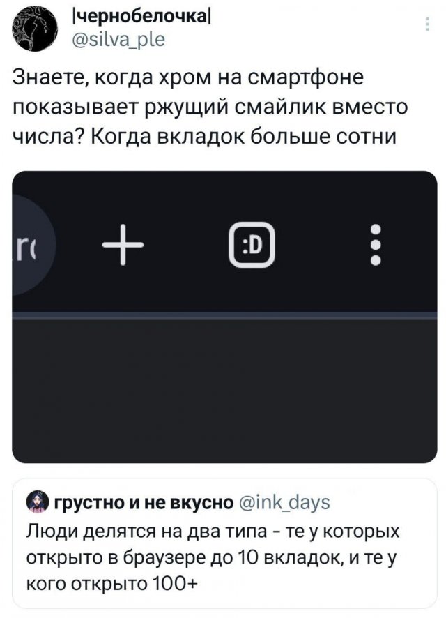🐦 Подборка забавных твитов обо всём 23/10/2025 18:00 Легкий, остроумный и чуть-чуть жизненный юмор — то, что нужно, чтобы сбросить усталость дня. Так что устраивайтесь поудобнее, открывайте пост и наслаждайтесь твитами, которые невозможно читать без улыбки! Главная / Картинки +1 Admin 0 66
