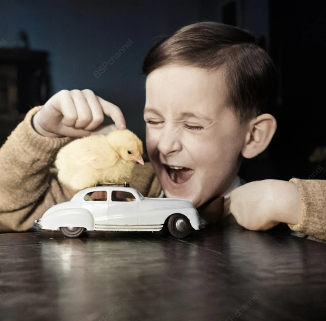 Джентльмен подкармливает белочку. Швеция, 1945 год.