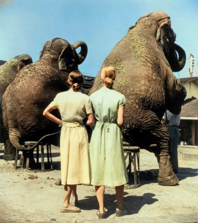 Близнецы со слонами, Сарасота, США, 1947 год.