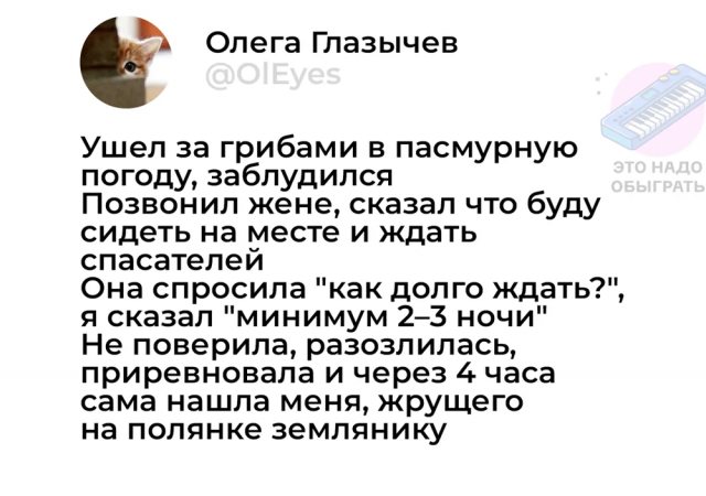 🍄 Немного грибного юмора для осеннего настроения 24/10/2025 22:50 Считается, что осенью грибы заканчиваются. А вот и нет! В это время в лесу ждут настоящие великаны — подосиновики, боровики и белые. Главное — не перепутать корзину для грибов с корзиной для мемов. Главная / Картинки +1 Admin 0 58