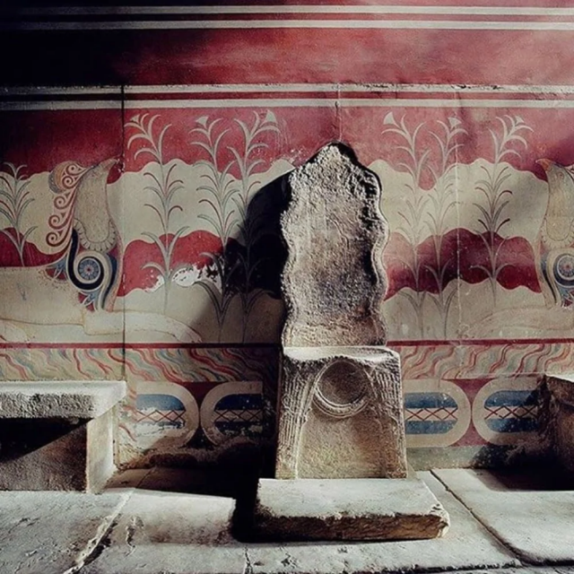 Старейший тронный зал в Европе в сердце минойского дворца бронзового века в Кноссе, Крит, 15 век до нашей эры