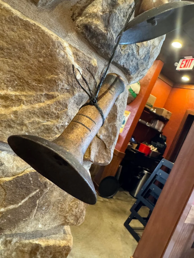 2. Вогнутый металлический диск на деревянной рукояти, обнаружен в барбекю-ресторане
