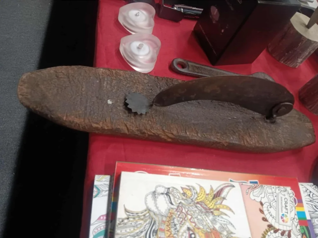 Традиционная индийская овощерезка. Часть с зазубринами используется для получения кокосовой стружки.