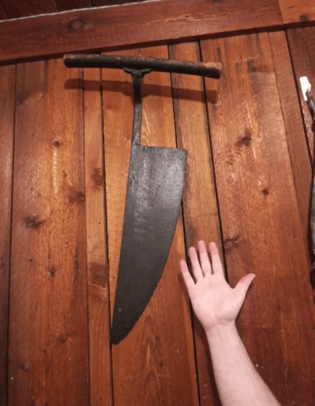7. Железный инструмент длиной около 70 сантиметров, висевший в дупле дерева