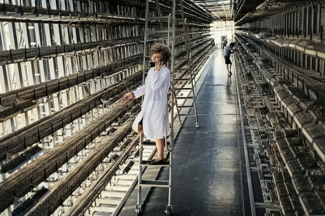 Работница тепличного хозяйства совхоза "Брянский" Л.А. Дворянчикова в теплице. Брянская область, 1972 год.