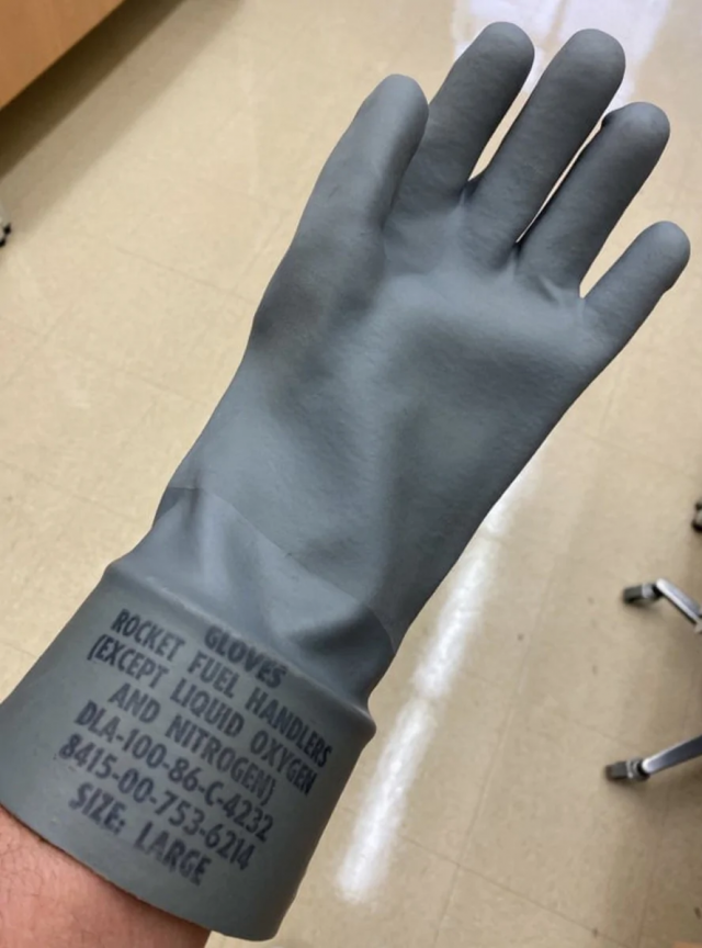 В данном случае перчатка предназначена для работы с ракетным топливом