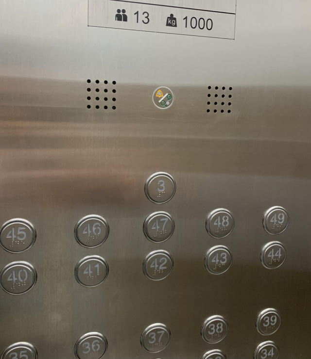 Кнопка третьего этажа расположена на самом верху панели лифта